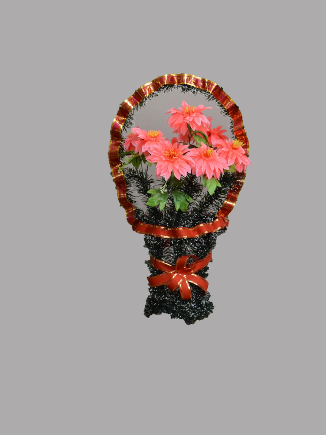 Корзина с желтыми розами и зеленью, лента вечная память входит в стоимость изделия, высота 95см, ширина 40см (цвета в ассортименте)