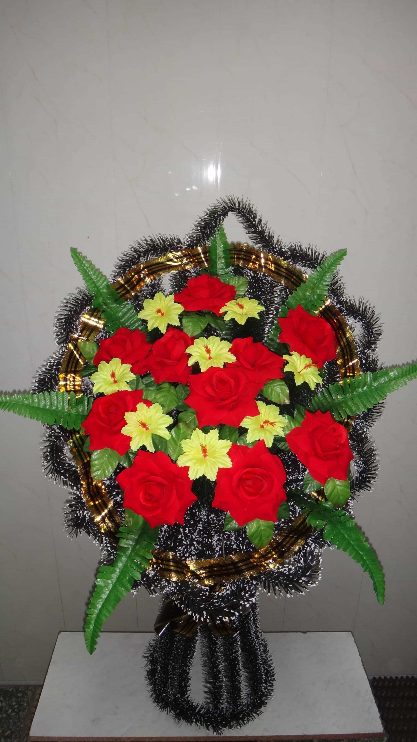 Ритуальная корзина из цветов. Высота 70см. шир.-40 см. Белые лилий,белые розы