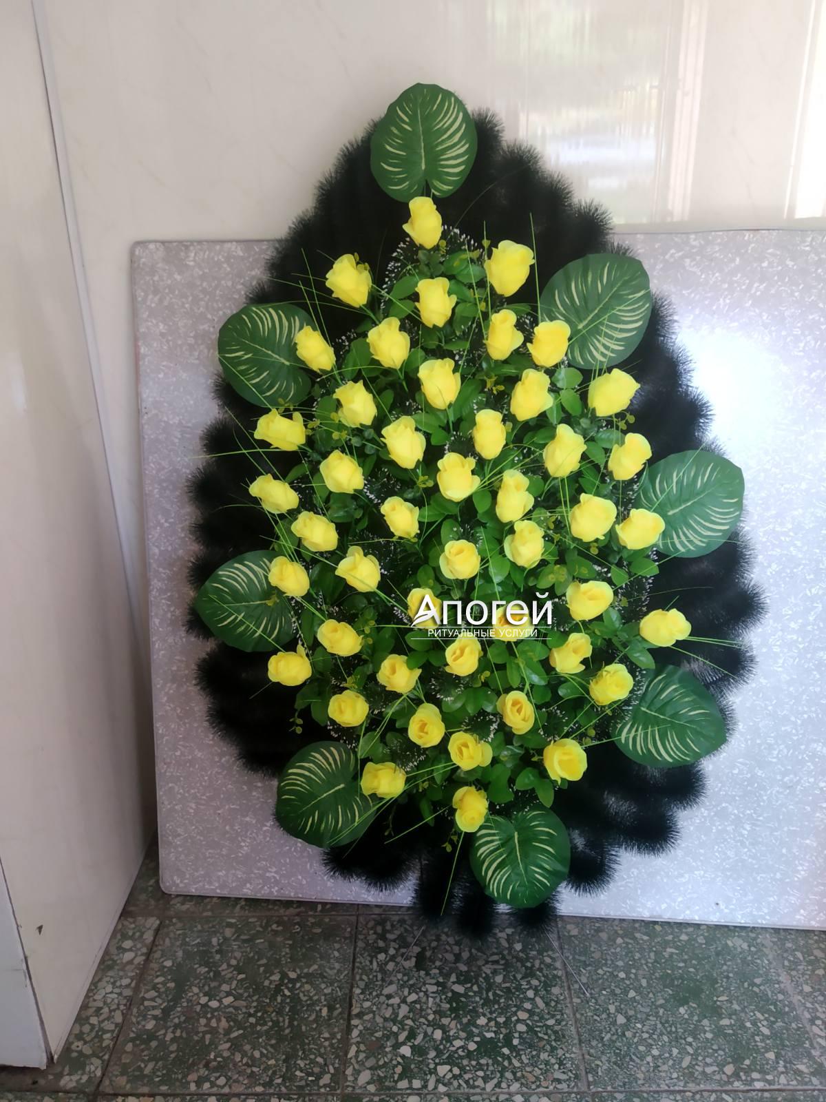 Венок высота 160 см, ширина 100 см, венок с желтыми бутонами роз с зеленью и асокой